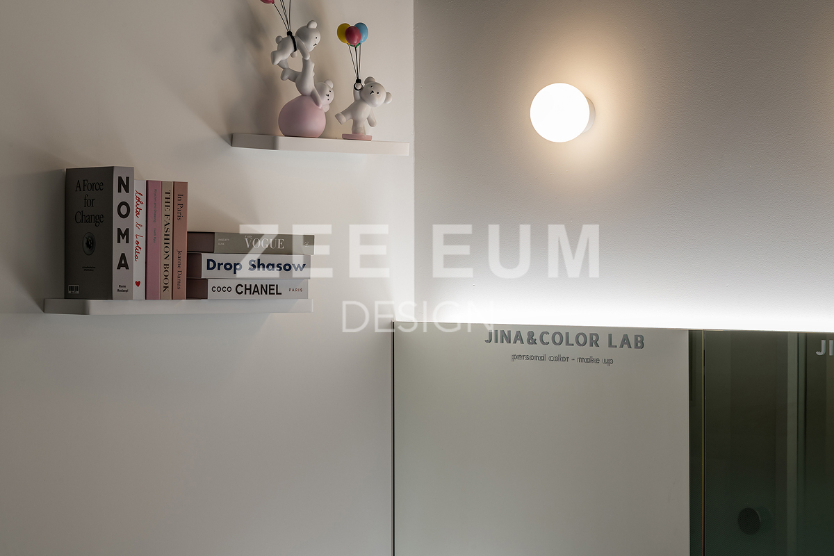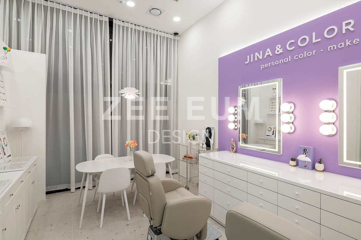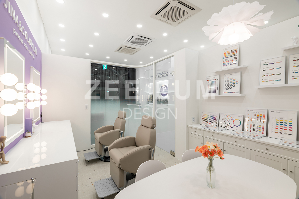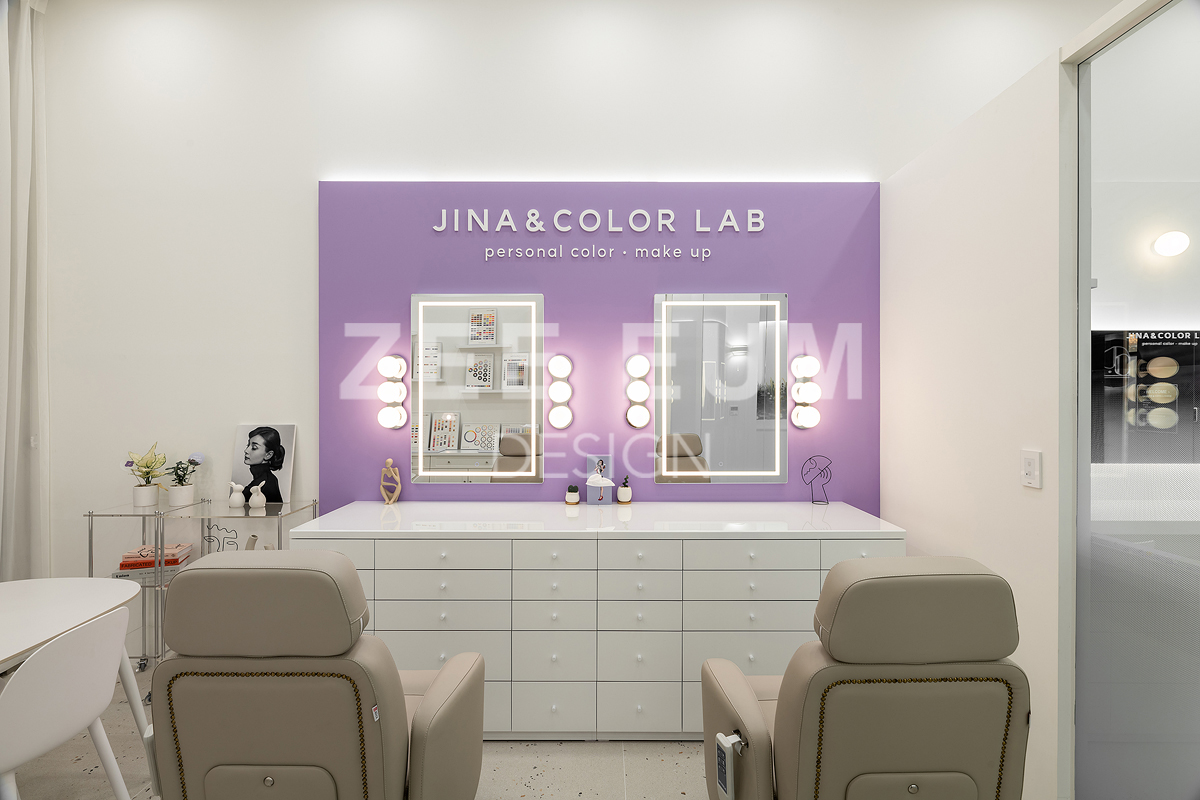 지나앤컬러 프로젝트는 클라이언트의 예쁜  '지나' 라는 이름을 넣어 '지나앤 컬러랩'이라는  퍼스널 컬러진단과 메이크업 및 컨설팅을 함께 운영하는 퍼스널컬러샵을 시공한 사례이다.