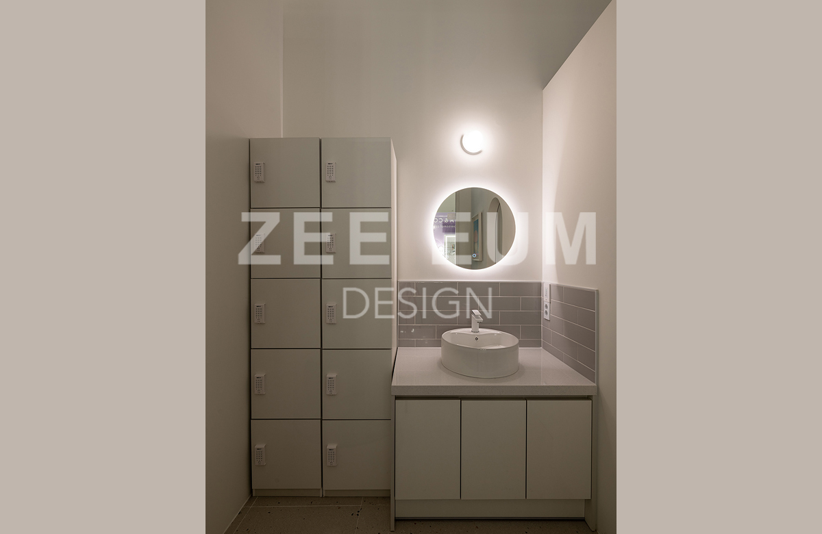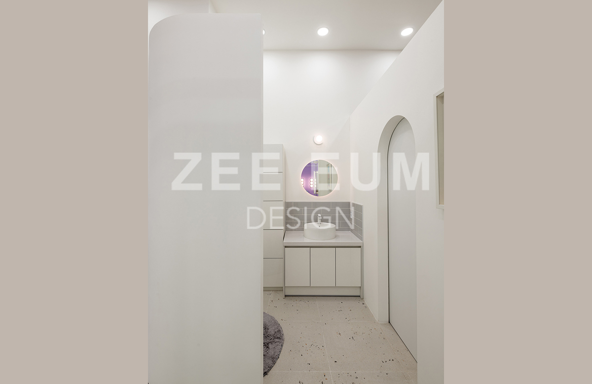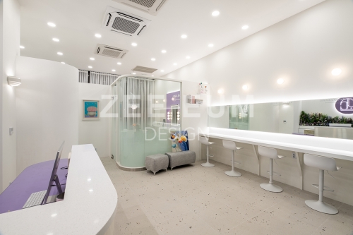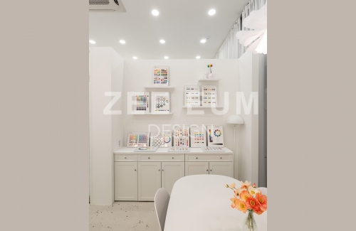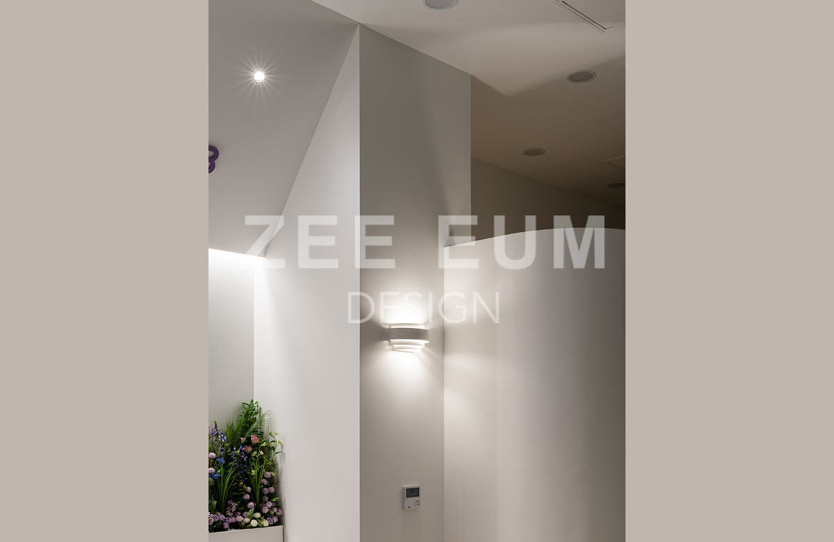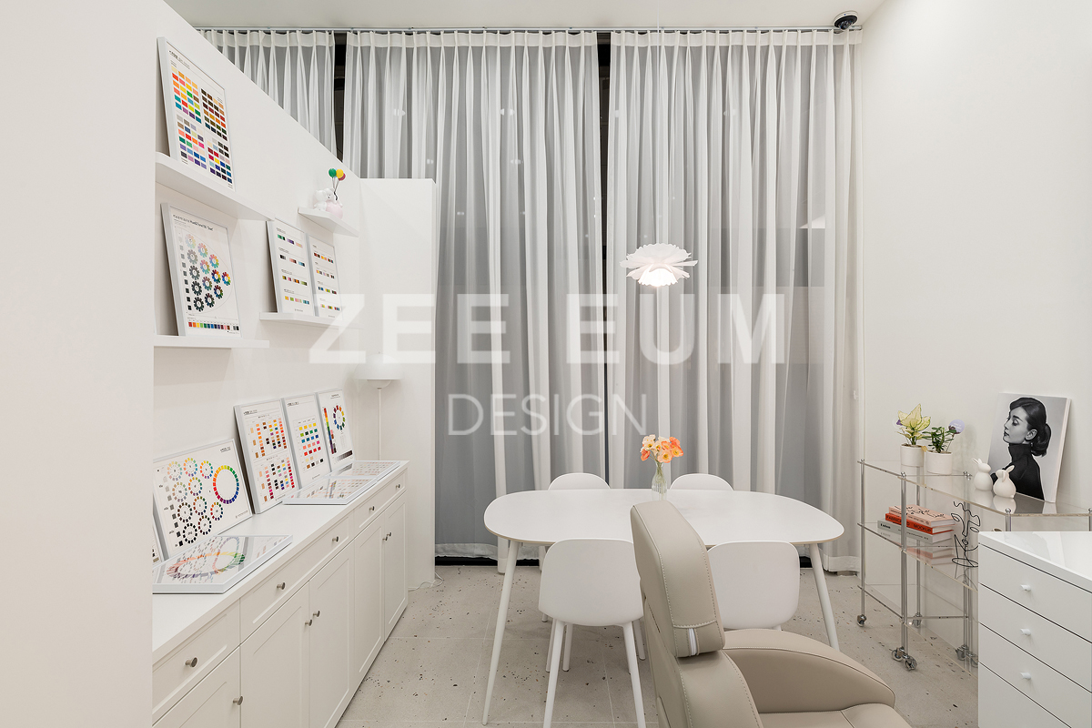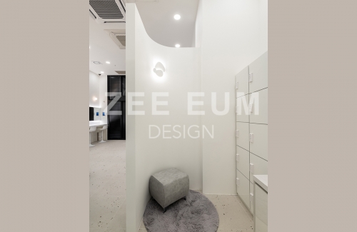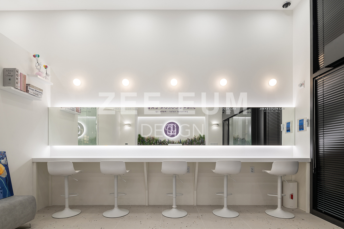 피부샵, 병원, 메이크업샵 이들 모두 인테리어에서 가장 중요한 요소 중 하나는 '동선설계'이다. 20평이 안되는 아담한 공간에 모든것을 실현하기 위해 수 년간 다수의 샵의 인테리어를 시공한 지음의 노하우를 적용해 설계하여 최적의 동선으로 구성되었다.  중심의 공간인 로비를 최대한 크게 확보하되 효율적으로 클래스 수업을 할 수 있도록 공간을 활용하였고, 메이크업과 퍼스널 컬러를 동시에 진행하되 공간 분리를 하여 각자의 기능을 할 수 있도록 설계하였다. 또한 필수 공간인 탕비실을 효율적인 동선을 확보하여 세면실과 락커룸까지 데드 스페이스를 발생하지 않도록 빈틈없이 설계했다.