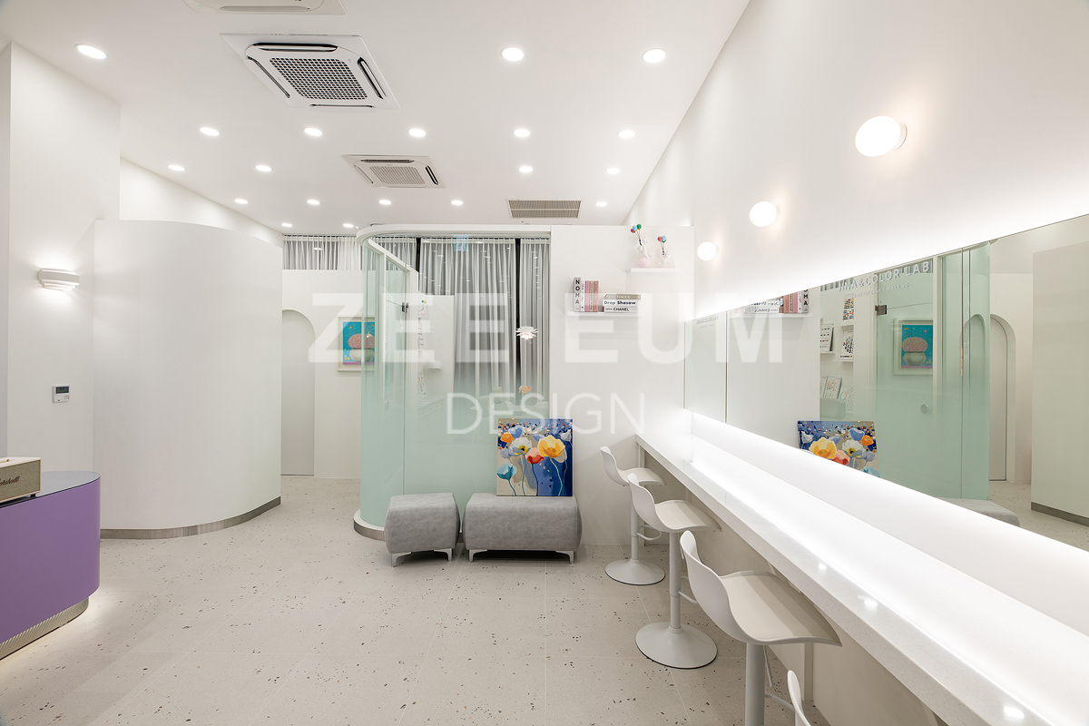 기능과 디자인을 모두 충족시키는 공간을 세심하게 고려하였고, 클라이언트의 바람과 지음의 감각적인 디자인이 만나 세상에 하나뿐인 힐링 메이크업샵의 공간이 완성 되었다.